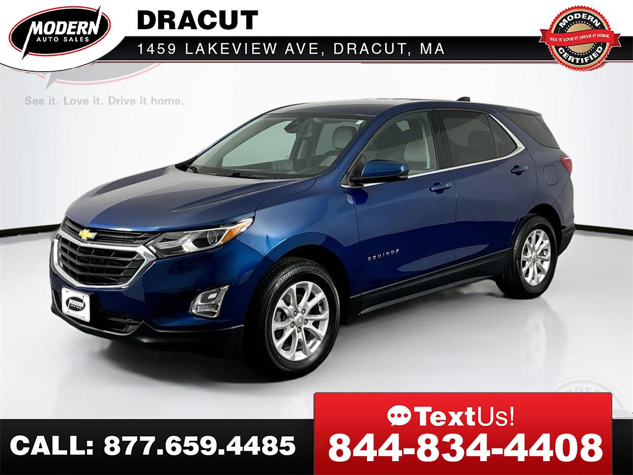 This 2020 Chevrolet Equinox LT is a one-owner SUV in fantastic condition with 57k miles, featuring a sharp Pacific Blue Metallic exterior and Ash Gray interior. Reliable, stylish, and ready for any adventure. Schedule a test drive today or start the purchase process online! *MODERN CERTIFIED* Chevrolet Equinox LT All-Wheel Drive, 1.5L Turbo, 6 Speed Auto, Push Button Start, BACK up CAMERA, BLUETOOTH Hands Free, ONSTAR, SIRIUS XM, Traction Control, POWER SEAT, Privacy Glass, Keyless Entry, PARK SENSORS, Service Records Available, Written Warranty, NEW Brakes, GOOD Tires, 2 KEYS, Owners Manuals, Oil change Club Membership, FREE Loaner cars, and it has been PROFESSIONALLY DETAILED Top to Bottom, so it LOOKS and SMELLS like NEW!!! 17' Aluminum Wheels, 4-Wheel Disc Brakes, ABS brakes, Air Conditioning, Apple CarPlay/Android Auto, Auto High-beam Headlights, Electronic Stability Control, Heated door mirrors, Power door mirrors, Split folding rear seat, Steering wheel mounted audio controls, Telescoping steering wheel, Tilt steering wheel. CARFAX One-Owner. Odometer is 11528 miles below market average! 25/30 City/Highway MPG Stop by anytime for a test drive, bring your trade in and you can take this Good looking vehicle home today. This 2020 Chevrolet Equinox LT AWD has been through our Modern Certification Process, which includes a Written Warranty, a Complete Auto Detail, Spare Keys, Owners Manuals, a Full tank of Gas, FREE Carfax Vehicle History Report, 120-Point Rigorous Inspection, access to the vehicle service records, and Live Market Pricing, so you will have all the information you need to make a confident decision. Here at Modern Auto Sales we make the purchasing process easy and hassle free. If you've been searching for just the right vehicle, as well as the right dealership, then stop your search here. Give us a call or submit a form here on this site to schedule your visit, we promise not to waste your time, and you will be given the attention you deserve. Here are some of the added benefits you get when you buy from Modern Auto Sales * Written Warranty * Future service and maintenance discounts * Free Loaner car for Life * 2 Sets of Keys * Owner's Manual * First Stain Removal Free * Free windshield chip repair * Free oil change club Membership * Free Digital inspection every time you're in for service * AND SO MUCH MORE.This Vehicle is Located at our Dracut Location - 1459 Lakeview Ave Dracut, MA 01826 - Buy your next car the Modern Way and skip the hassle of the traditional dealerships.Our live market pricing with history adjusted valuation and daily discounts ensure that you'll get the best deal possible 7 days a week. Whether you prefer to visit us in person, or buy online and have your car shipped directly to you, we're here to make your car buying experience as easy and stress free as possible. What is a History Adjusted Valuation? A History Adjusted Valuation is a tool used to determine the value of a vehicle. It takes into account the vehicle's history, including events like accidents, ownership changes, and title brands. Black Book uses Experian AutoCheck data to provide this type of valuation. When you provide the vehicle's VIN, Black Book retrieves the AutoCheck report and adjusts the value based on the history events found in the report. Think of it like adjusting the value based on the vehicle's history, similar to how the value might be adjusted for the mileage.Visit Modern Auto Sales Dracut online at www.modernautosalesofdracut.com to see more pictures of this vehicle or call us at 978-815-6520 today to schedule your test drive.