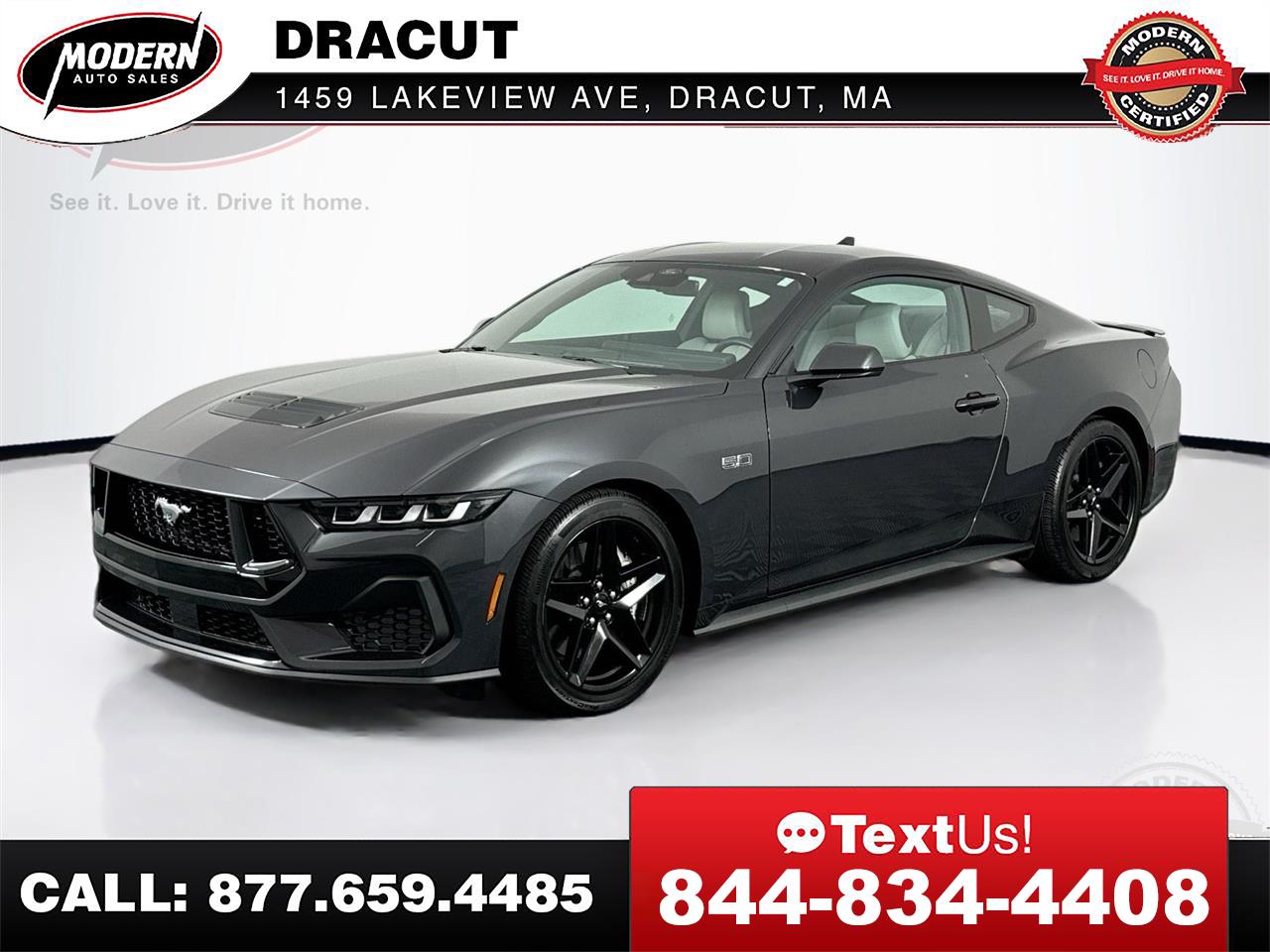This 2024 Mustang GT Premium is in flawless condition with only 3,400 miles. Finished in Dark Gray Metallic and with a one owner history, this V8-powered icon is ready to roar. Schedule a test drive today or start the purchase process online! *MODERN CERTIFIED* Ford Mustang GT Premium Coupe, Coyote 5.0L V8, 10 Speed Auto W/ Paddle Shift, Push Button Start, Remainder of Factory Warranty, BACK up CAMERA, BLUETOOTH Hands Free, FORD SYNC, SIRIUS XM, REMOTE START, Traction Control, LEATHER SEATS, HEATED SEATS, DUAL POWER SEATS, HEATED Steering Wheel, Keyless Entry, PARK SENSORS, Service Records Available, Written Warranty, GOOD Brakes, GOOD Tires, 2 KEYS, Owners Manuals, Oil change Club Membership, FREE Loaner cars, and it has been PROFESSIONALLY DETAILED Top to Bottom, so it LOOKS and SMELLS like NEW!!! 3.55 Limited Slip Rear Axle, 4-Wheel Disc Brakes, ABS brakes, Auto High-beam Headlights, Automatic temperature control, Electronic Stability Control, Exterior Parking Camera Rear, Power door mirrors, Rain sensing wipers, Rear Parking Sensors, Spoiler, Steering wheel mounted audio controls, Telescoping steering wheel, Tilt steering wheel, Wheels: 19' Premier Polished Aluminum. CARFAX One-Owner. Clean CARFAX. Odometer is 4760 miles below market average! You have to see this one in person to truly appreciate its condition, stop by today, we offer financing with low monthly payments and all trade ins are welcome. This 2024 Ford Mustang GT Coupe Premium RWD has been through our Modern Certification Process, which includes a Written Warranty, a Complete Auto Detail, Spare Keys, Owners Manuals, a Full tank of Gas, FREE Carfax Vehicle History Report, 120-Point Rigorous Inspection, access to the vehicle service records, and Live Market Pricing, so you will have all the information you need to make a confident decision. Here at Modern Auto Sales we make the purchasing process easy and hassle free. If you've been searching for just the right vehicle, as well as the right dealership, then stop your search here. Give us a call or submit a form here on this site to schedule your visit, we promise not to waste your time, and you will be given the attention you deserve. Here are some of the added benefits you get when you buy from Modern Auto Sales * Written Warranty * Future service and maintenance discounts * Free Loaner car for Life * 2 Sets of Keys * Owner's Manual * First Stain Removal Free * Free windshield chip repair * Free oil change club Membership * Free Digital inspection every time you're in for service * AND SO MUCH MORE.This Vehicle is Located at our Dracut Location - 1459 Lakeview Ave Dracut, MA 01826 - Buy your next car the Modern Way and skip the hassle of the traditional dealerships.Our live market pricing with history adjusted valuation and daily discounts ensure that you'll get the best deal possible 7 days a week. Whether you prefer to visit us in person, or buy online and have your car shipped directly to you, we're here to make your car buying experience as easy and stress free as possible. What is a History Adjusted Valuation? A History Adjusted Valuation is a tool used to determine the value of a vehicle. It takes into account the vehicle's history, including events like accidents, ownership changes, and title brands. Black Book uses Experian AutoCheck data to provide this type of valuation. When you provide the vehicle's VIN, Black Book retrieves the AutoCheck report and adjusts the value based on the history events found in the report. Think of it like adjusting the value based on the vehicle's history, similar to how the value might be adjusted for the mileage.Visit Modern Auto Sales Dracut online at www.modernautosalesofdracut.com to see more pictures of this vehicle or call us at 978-815-6520 today to schedule your test drive.