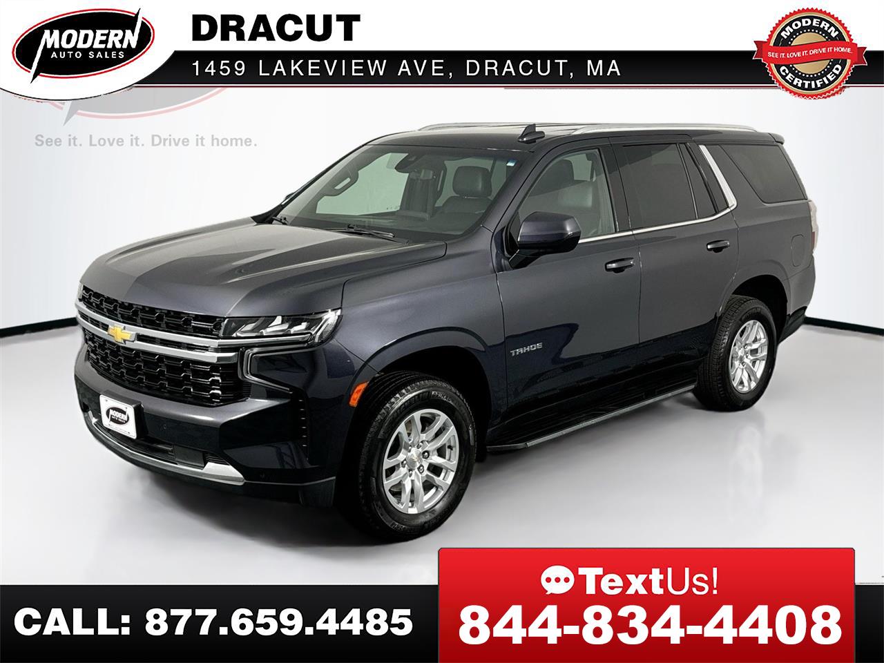 This 2022 Chevrolet Tahoe LS is a one-owner SUV in amazing condition, finished in sleek Dark Ash Metallic and powered by a 5.3L V8. Spacious, reliable, and ready for any adventure. Schedule a test drive today or start the purchase process online! *MODERN CERTIFIED* Chevrolet Tahoe LS 4WD, 5.3L V8, 10 Speed Auto, Push Button Start, Remainder of Factory Warranty, BACK up CAMERA, BLUETOOTH Hands Free, 3RD ROW SEATING, ONSTAR, SIRIUS XM, REMOTE START, Traction Control, LEATHER SEATS, HEATED SEATS, DUAL POWER SEATS, Privacy Glass, Keyless Entry, ROOF RACK, PARK SENSORS, RUNNING BOARDS, TOW PACKAGE, Service Records Available, Written Warranty, NEW Brakes All Around, GOOD Tires, NEW Wipers, 2 KEYS, Owners Manuals, Oil change Club Membership, FREE Loaner cars, and it has been PROFESSIONALLY DETAILED Top to Bottom, so it LOOKS and SMELLS like NEW!!! 3rd row seats: split-bench, Apple CarPlay/Android Auto, Auto High-beam Headlights, Driver Alert Package, Electronic Stability Control, Front dual zone A/C, Heated door mirrors, Lane Change Alert w/Side Blind Zone Alert, LED Daytime Running Lamps, Power door mirrors, Rain sensing wipers, Rear air conditioning, Rear Cross Traffic Alert, Steering wheel mounted audio controls, Telescoping steering wheel, Tilt steering wheel, Wheels: 18' Bright Silver Painted Aluminum. CARFAX One-Owner. Odometer is 4974 miles below market average! DONT PASS ME UP!!! - The PICTURES Speak for Themselves - TAKE a LOOK - You will not be disappointed here. Come by today, were OPEN 7 Days a Week. This 2022 Chevrolet Tahoe LS 4x4 has been through our Modern Certification Process, which includes a Written Warranty, a Complete Auto Detail, Spare Keys, Owners Manuals, a Full tank of Gas, FREE Carfax Vehicle History Report, 120-Point Rigorous Inspection, access to the vehicle service records, and Live Market Pricing, so you will have all the information you need to make a confident decision. Here at Modern Auto Sales we make the purchasing process easy and hassle free. If you've been searching for just the right vehicle, as well as the right dealership, then stop your search here. Give us a call or submit a form here on this site to schedule your visit, we promise not to waste your time, and you will be given the attention you deserve. Here are some of the added benefits you get when you buy from Modern Auto Sales * Written Warranty * Future service and maintenance discounts * Free Loaner car for Life * 2 Sets of Keys * Owner's Manual * First Stain Removal Free * Free windshield chip repair * Free oil change club Membership * Free Digital inspection every time you're in for service * AND SO MUCH MORE. Buy your next car the Modern Way and skip the hassle of the traditional dealerships.Our live market pricing with history adjusted valuation and daily discounts ensure that you'll get the best deal possible 7 days a week. Whether you prefer to visit us in person, or buy online and have your car shipped directly to you, we're here to make your car buying experience as easy and stress free as possible. What is a History Adjusted Valuation? A History Adjusted Valuation is a tool used to determine the value of a vehicle. It takes into account the vehicle's history, including events like accidents, ownership changes, and title brands. Black Book uses Experian AutoCheck data to provide this type of valuation. When you provide the vehicle's VIN, Black Book retrieves the AutoCheck report and adjusts the value based on the history events found in the report. Think of it like adjusting the value based on the vehicle's history, similar to how the value might be adjusted for the mileage.Visit Modern Auto Sales Dracut online at www.modernautosalesofdracut.com to see more pictures of this vehicle or call us at 978-815-6520 today to schedule your test drive.
