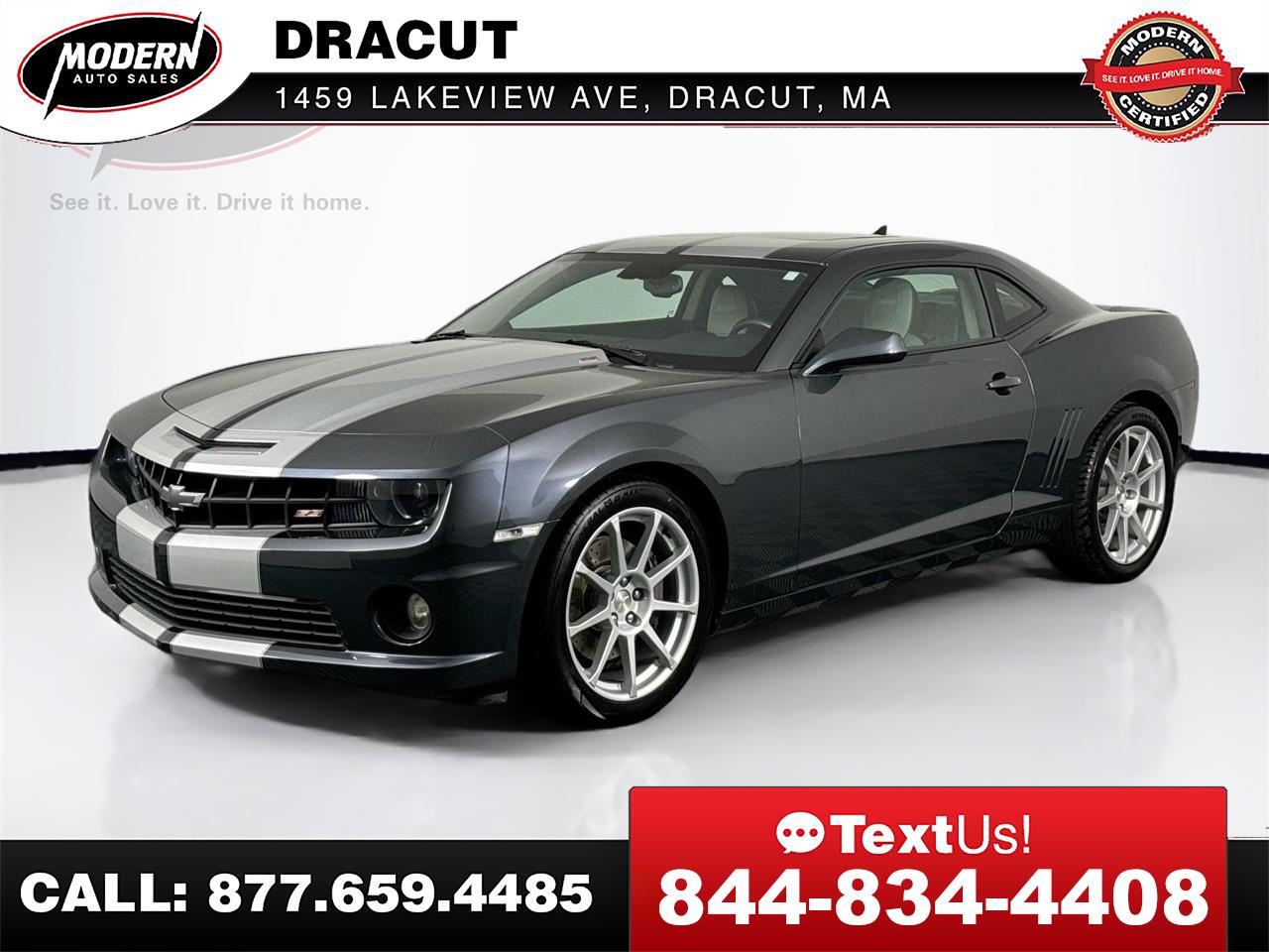 This 2010 Chevrolet Camaro SS 2SS is a one-owner vehicle with only 60k miles, dressed in Cyber Gray Metallic and powered by a 6.2L V8. Fully through our Modern Certification Process, this head-turning muscle car is mechanically and cosmetically pristine. Schedule a test drive today or start the purchase process online! *MODERN CERTIFIED*, MOONROOF / SUNROOF, BLUETOOTH Hands Free, ONSTAR, SIRIUS XM, REMOTE START, Traction Control, LEATHER SEATS, DUAL POWER SEATS, Service Records Available, Written Warranty, GOOD Brakes, GOOD Tires, 2 KEYS, Owners Manuals, Oil change Club Membership, FREE Loaner cars, and it has been PROFESSIONALLY DETAILED Top to Bottom, so it LOOKS and SMELLS like NEW!!! CARFAX One-Owner. We offer financing with low monthly payments, you can trade your vehicle in even if you still owe money on it, come by today, were open late. This Chevrolet Camaro has been through our Modern Certification Process, which includes a Written Warranty, a Complete Auto Detail, Spare Keys, Owners Manuals, a Full tank of Gas, FREE Carfax Vehicle History Report, 120-Point Rigorous Inspection, access to the vehicle service records, and Live Market Pricing, so you will have all the information you need to make a confident decision. Here at Modern Auto Sales we make the purchasing process easy and hassle free. If you've been searching for just the right vehicle, as well as the right dealership, then stop your search here. Give us a call or submit a form here on this site to schedule your visit, we promise not to waste your time, and you will be given the attention you deserve. Here are some of the added benefits you get when you buy from Modern Auto Sales * Written Warranty * Future service and maintenance discounts * Free Loaner car for Life * 2 Sets of Keys * Owner's Manual * First Stain Removal Free * Free windshield chip repair * Free oil change club Membership * Free Digital inspection every time you're in for service * AND SO MUCH MORE. Buy your next car the Modern Way and skip the hassle of the traditional dealerships.Our live market pricing with history adjusted valuation and daily discounts ensure that you'll get the best deal possible 7 days a week. Whether you prefer to visit us in person, or buy online and have your car shipped directly to you, we're here to make your car buying experience as easy and stress free as possible. What is a History Adjusted Valuation? A History Adjusted Valuation is a tool used to determine the value of a vehicle. It takes into account the vehicle's history, including events like accidents, ownership changes, and title brands. Black Book uses Experian AutoCheck data to provide this type of valuation. When you provide the vehicle's VIN, Black Book retrieves the AutoCheck report and adjusts the value based on the history events found in the report. Think of it like adjusting the value based on the vehicle's history, similar to how the value might be adjusted for the mileage.Visit Modern Auto Sales Dracut online at www.modernautosalesofdracut.com to see more pictures of this vehicle or call us at 978-815-6520 today to schedule your test drive.