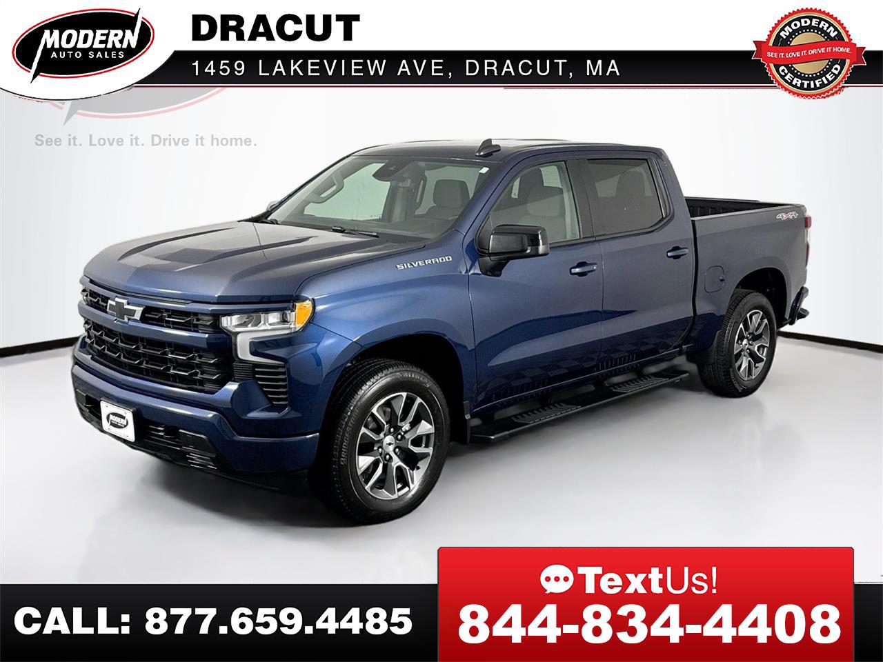 This 2023 Chevrolet Silverado 1500 RST is a one owner truck with only 18K miles, finished in Northsky Blue and powered by the 5.3L V8. Fully through our Modern Certification Process, this well equipped Silverado delivers strong performance and modern features. Schedule a test drive today or start the purchase process online! *MODERN CERTIFIED* Chevrolet Silverado 1500 RST Crew Cab 4WD, 5.3L V8, 10 Speed Auto, Push Button Start, Remainder of Factory Warranty, BACK up CAMERA, BLUETOOTH Hands Free, ONSTAR, SIRIUS XM, REMOTE START, Traction Control, HEATED SEATS, POWER SEAT, HEATED Steering Wheel, Privacy Glass, Keyless Entry, RUNNING BOARDS, TOW PACKAGE, Service Records Available, Written Warranty, GOOD Brakes, GOOD Tires, 2 KEYS, Owners Manuals, Oil change Club Membership, FREE Loaner cars, and it has been PROFESSIONALLY DETAILED Top to Bottom, so it LOOKS and SMELLS like NEW!!! 12.3' Multicolor Reconfigurable Digital Display, 120-Volt Bed Mounted Power Outlet, 120-Volt Instrument Panel Power Outlet, ABS brakes, All-Star Edition, Apple CarPlay/Android Auto, Auto High-beam Headlights, Auto-Locking Rear Differential, Automatic Emergency Braking, Convenience Package, Dual-Zone Automatic Climate Control, Electronic Stability Control, EZ Lift Power Lock Release Tailgate, Forward Collision Alert, Front fog lights, Front LED Fog Lamps, Front Pedestrian Braking, Heated door mirrors, Keyless Open Start, Lane Keep Assist w/Lane Departure Warning, LED Cargo Area Lighting, Power door mirrors, Remote Vehicle Starter System, Telescoping steering wheel, Tilt steering wheel, Wheels: 20' Painted Aluminum, Wi-Fi Hot Spot Capable. CARFAX One-Owner. Clean CARFAX. On the spot delivery 7 days a week, Stop by with your trade in and you can take this well kept vehicle home today. This 2023 Chevrolet Silverado 1500 RST Crew Cab 4x4 has been through our Modern Certification Process, which includes a Written Warranty, a Complete Auto Detail, Spare Keys, Owners Manuals, a Full tank of Gas, FREE Carfax Vehicle History Report, 120-Point Rigorous Inspection, access to the vehicle service records, and Live Market Pricing, so you will have all the information you need to make a confident decision. Here at Modern Auto Sales we make the purchasing process easy and hassle free. If you've been searching for just the right vehicle, as well as the right dealership, then stop your search here. Give us a call or submit a form here on this site to schedule your visit, we promise not to waste your time, and you will be given the attention you deserve. Here are some of the added benefits you get when you buy from Modern Auto Sales * Written Warranty * Future service and maintenance discounts * Free Loaner car for Life * 2 Sets of Keys * Owner's Manual * First Stain Removal Free * Free windshield chip repair * Free oil change club Membership * Free Digital inspection every time you're in for service * AND SO MUCH MORE. Buy your next car the Modern Way and skip the hassle of the traditional dealerships.Our live market pricing with history adjusted valuation and daily discounts ensure that you'll get the best deal possible 7 days a week. Whether you prefer to visit us in person, or buy online and have your car shipped directly to you, we're here to make your car buying experience as easy and stress free as possible. What is a History Adjusted Valuation? A History Adjusted Valuation is a tool used to determine the value of a vehicle. It takes into account the vehicle's history, including events like accidents, ownership changes, and title brands. Black Book uses Experian AutoCheck data to provide this type of valuation. When you provide the vehicle's VIN, Black Book retrieves the AutoCheck report and adjusts the value based on the history events found in the report. Think of it like adjusting the value based on the vehicle's history, similar to how the value might be adjusted for the mileage.Visit Modern Auto Sales Dracut online at www.modernautosalesofdracut.com to see more pictures of this vehicle or call us at 978-815-6520 today to schedule your test drive.