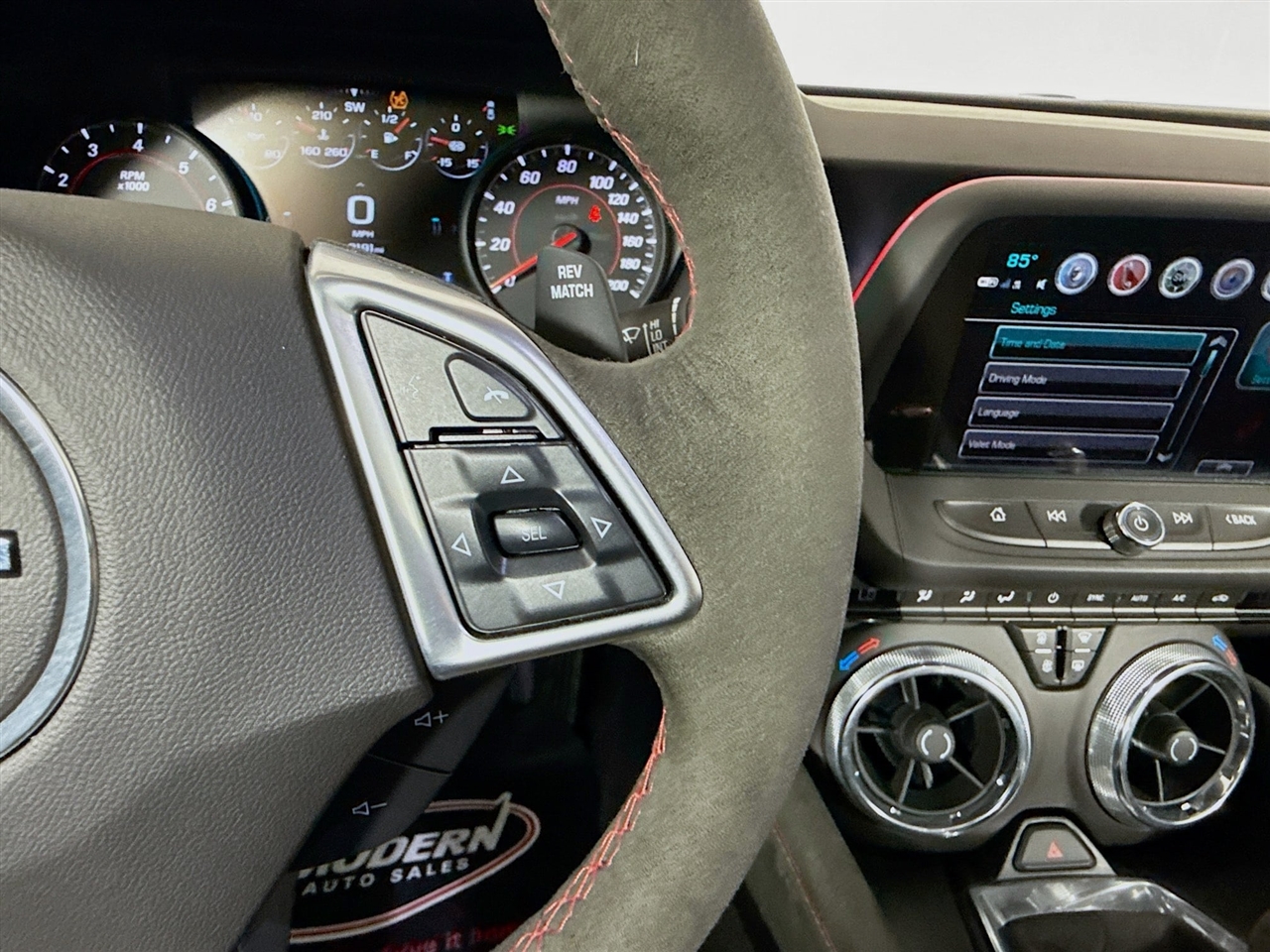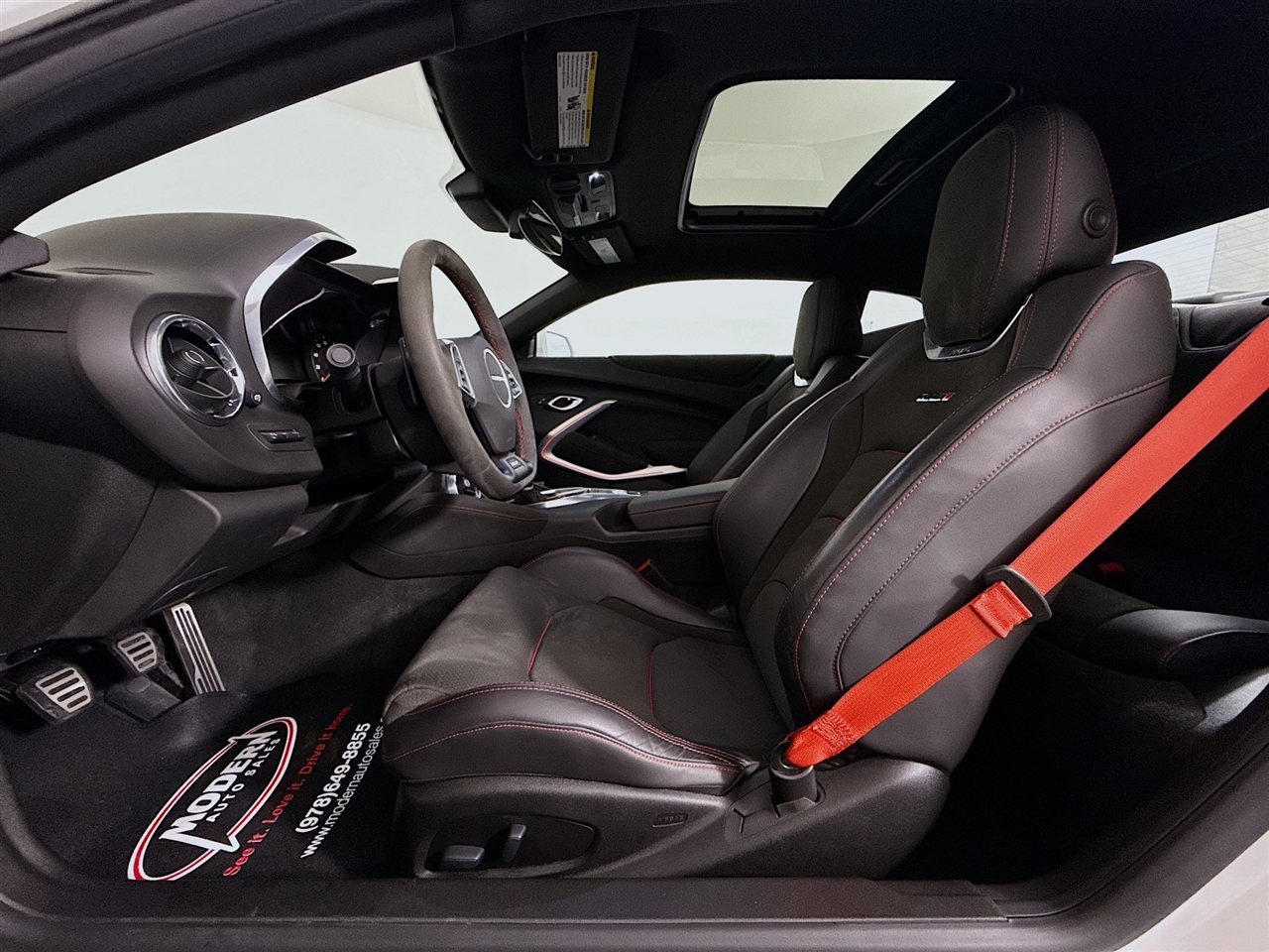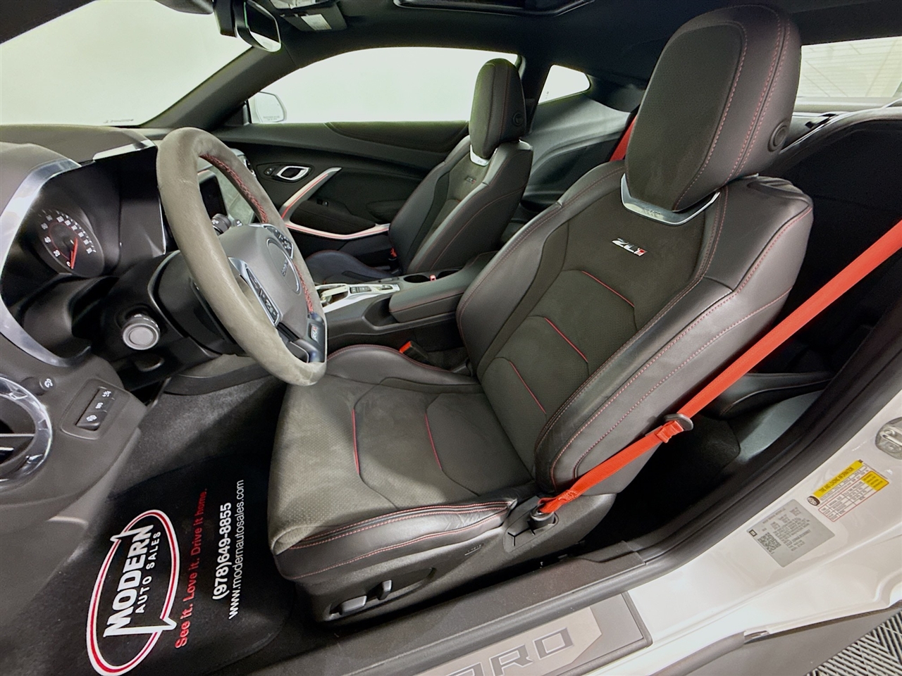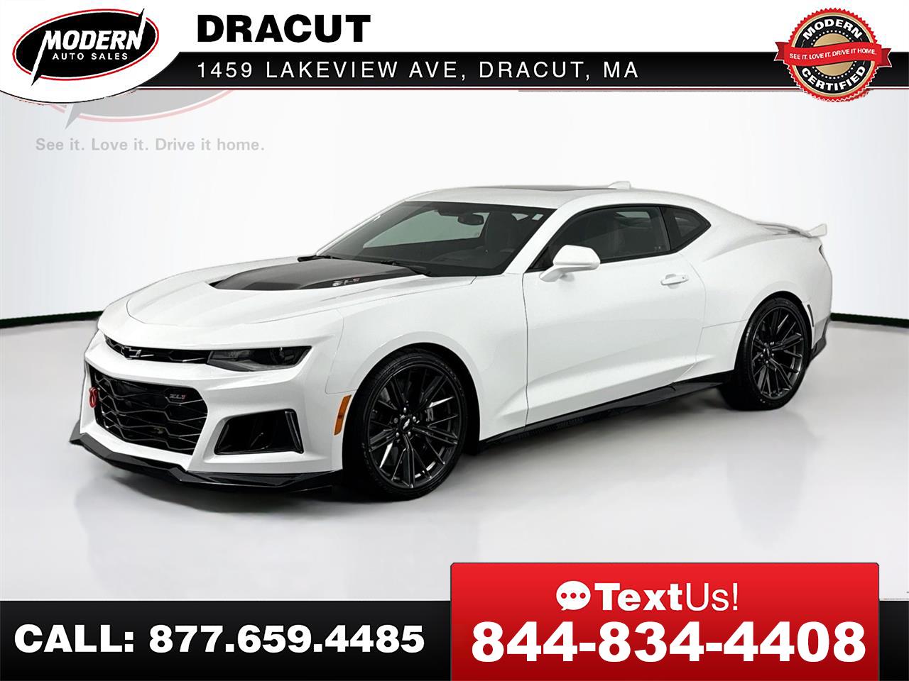 Take a look at this stunning Chevy Camaro ZL1, its practically brand new inside and out, with only 9,000 original miles. Meticulously maintained and fully serviced, this ZL1 is protected with full-body PPF (Paint Protection Film), keeping it in showroom condition. This is easily one of the cleanest ZL1s on the market today. Dont miss your chance, buy it in-store or online, and well deliver it straight to your driveway. *MODERN CERTIFIED* Chevrolet Camaro ZL1, LT4 6.2L Supercharged V8, 6 Speed Manual, Push Button Start, NAVIGATION - GPS, MOONROOF / SUNROOF, BACK up CAMERA, BLUETOOTH Hands Free, ONSTAR, SIRIUS XM, Traction Control, LEATHER SEATS, HEATED SEATS, DUAL POWER SEATS, HEATED Steering Wheel, Keyless Entry, PARK SENSORS, Service Records Available, Written Warranty, GOOD Brakes, GOOD Tires, 2 KEYS, Owners Manuals, Oil change Club Membership, FREE Loaner cars, and it has been PROFESSIONALLY DETAILED Top to Bottom, so it LOOKS and SMELLS like NEW!!! 4-Wheel Disc Brakes, ABS brakes, Adaptive suspension, Apple CarPlay/Android Auto, Battery Protection Package (LPO), Bose Premium 9-Speaker Audio System Feature, Electronic Stability Control, Exterior Parking Camera Rear, Front dual zone A/C, Front fog lights, Fully automatic headlights, Garage door transmitter, Heads-Up Display, Heated door mirrors, Heated steering wheel, Memory seat, Performance Data Video Recorder, Power door mirrors, Power Sunroof, Preferred Equipment Group ZL1, Spoiler, Telescoping steering wheel, Tilt steering wheel, Ventilated front seats, Wheels: 20' x 10' Fr 20' x 11' Rr Dark Graphite. Clean CARFAX. You have to see this one in person to truly appreciate its condition, stop by today, we offer financing with low monthly payments and all trade ins are welcome. This 2018 Chevrolet Camaro ZL1 Coupe RWD has been through our Modern Certification Process, which includes a Written Warranty, a Complete Auto Detail, Spare Keys, Owners Manuals, a Full tank of Gas, FREE Carfax Vehicle History Report, 120-Point Rigorous Inspection, access to the vehicle service records, and Live Market Pricing, so you will have all the information you need to make a confident decision. Here at Modern Auto Sales we make the purchasing process easy and hassle free. If you've been searching for just the right vehicle, as well as the right dealership, then stop your search here. Give us a call or submit a form here on this site to schedule your visit, we promise not to waste your time, and you will be given the attention you deserve. Here are some of the added benefits you get when you buy from Modern Auto Sales * Written Warranty * Future service and maintenance discounts * Free Loaner car for Life * 2 Sets of Keys * Owner's Manual * First Stain Removal Free * Free windshield chip repair * Free oil change club Membership * Free Digital inspection every time you're in for service * AND SO MUCH MORE. Buy your next car the Modern Way and skip the hassle of the traditional dealerships.Our live market pricing with history adjusted valuation and daily discounts ensure that you'll get the best deal possible 7 days a week. Whether you prefer to visit us in person, or buy online and have your car shipped directly to you, we're here to make your car buying experience as easy and stress free as possible. What is a History Adjusted Valuation? A History Adjusted Valuation is a tool used to determine the value of a vehicle. It takes into account the vehicle's history, including events like accidents, ownership changes, and title brands. Black Book uses Experian AutoCheck data to provide this type of valuation. When you provide the vehicle's VIN, Black Book retrieves the AutoCheck report and adjusts the value based on the history events found in the report. Think of it like adjusting the value based on the vehicle's history, similar to how the value might be adjusted for the mileage.Visit Modern Auto Sales Dracut online at www.modernautosalesofdracut.com to see more pictures of this vehicle or call us at 978-815-6520 today to schedule your test drive.