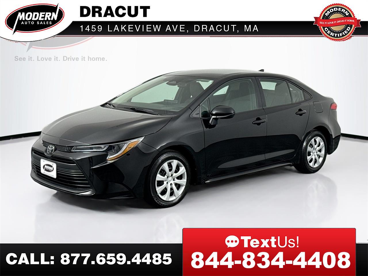 This One-Owner Toyota Corolla is the perfect blend of safety, reliability, and value. With just 24K miles, a clean Carfax report, and all service up to date, it has been exceptionally well cared for. Step in with confidence, this Corolla is ready to drive home today. *MODERN CERTIFIED* Toyota Corolla LE, 2.0L 4 Cylinder Engine, CVT Automatic Transmission, Remainder of Factory Warranty, BACK up CAMERA, BLUETOOTH Hands Free, SIRIUS XM, Traction Control, Service Records Available, Written Warranty, GOOD Brakes, GOOD Tires, 2 KEYS, Owners Manuals, Oil change Club Membership, FREE Loaner cars, and it has been PROFESSIONALLY DETAILED Top to Bottom, so it LOOKS and SMELLS like NEW!!! 16' Steel Wheels w/Covers, 4-Wheel Disc Brakes, ABS brakes, Auto High-beam Headlights, Automatic temperature control, Electronic Stability Control, Exterior Parking Camera Rear, Power door mirrors, Radio: 8' Toyota Audio Multimedia, Steering wheel mounted audio controls, Telescoping steering wheel, Tilt steering wheel. CARFAX One-Owner. Clean CARFAX. 32/41 City/Highway MPG You can do this!! We make it easy by accepting all trade ins, and offering 'ON THE SPOT' financing right here at the dealership, come visit us... you will be driving your new vehicle home Today. This 2024 Toyota Corolla LE FWD has been through our Modern Certification Process, which includes a Written Warranty, a Complete Auto Detail, Spare Keys, Owners Manuals, a Full tank of Gas, FREE Carfax Vehicle History Report, 120-Point Rigorous Inspection, access to the vehicle service records, and Live Market Pricing, so you will have all the information you need to make a confident decision. Here at Modern Auto Sales we make the purchasing process easy and hassle free. If you've been searching for just the right vehicle, as well as the right dealership, then stop your search here. Give us a call or submit a form here on this site to schedule your visit, we promise not to waste your time, and you will be given the attention you deserve. Here are some of the added benefits you get when you buy from Modern Auto Sales * Written Warranty * Future service and maintenance discounts * Free Loaner car for Life * 2 Sets of Keys * Owner's Manual * First Stain Removal Free * Free windshield chip repair * Free oil change club Membership * Free Digital inspection every time you're in for service * AND SO MUCH MORE. Buy your next car the Modern Way and skip the hassle of the traditional dealerships.Our live market pricing with history adjusted valuation and daily discounts ensure that you'll get the best deal possible 7 days a week. Whether you prefer to visit us in person, or buy online and have your car shipped directly to you, we're here to make your car buying experience as easy and stress free as possible. What is a History Adjusted Valuation? A History Adjusted Valuation is a tool used to determine the value of a vehicle. It takes into account the vehicle's history, including events like accidents, ownership changes, and title brands. Black Book uses Experian AutoCheck data to provide this type of valuation. When you provide the vehicle's VIN, Black Book retrieves the AutoCheck report and adjusts the value based on the history events found in the report. Think of it like adjusting the value based on the vehicle's history, similar to how the value might be adjusted for the mileage.Visit Modern Auto Sales Dracut online at www.modernautosalesofdracut.com to see more pictures of this vehicle or call us at 978-815-6520 today to schedule your test drive.