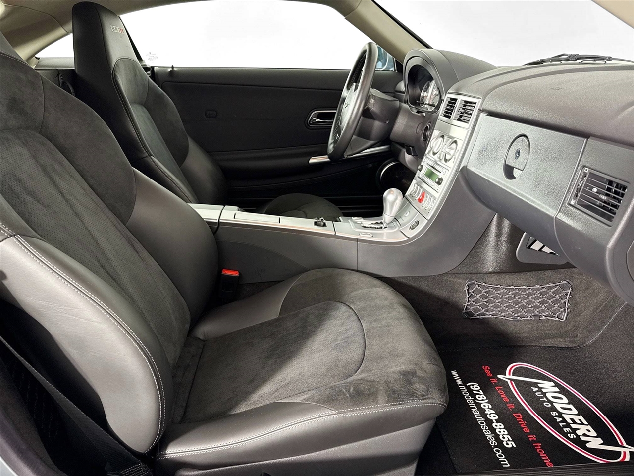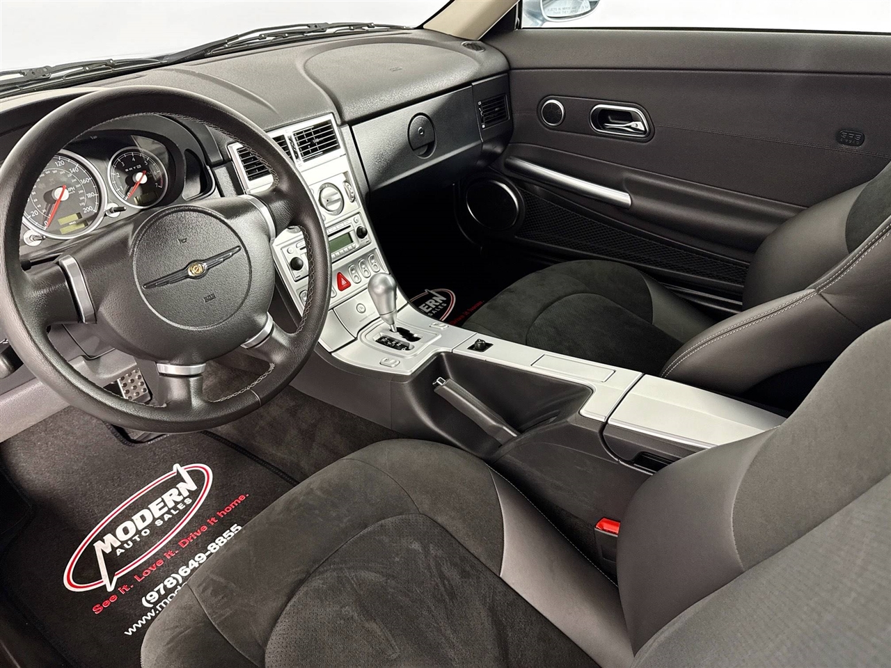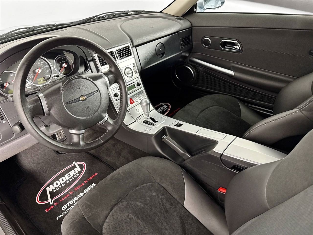 This 2005 Chrysler Crossfire SRT6 is an exceptionally rare find with only 5K miles! One of the lowest mileage examples available in the country! Powered by a supercharged V6 and in outstanding condition, this well maintained SRT6 delivers performance that feels like new. Schedule a test drive today or start the purchase process online! *MODERN CERTIFIED* Chrysler Crossfire SRT6 Coupe, 3.2L V6, 5 Speed Automatic Transmission, Traction Control, LEATHER SEATS, HEATED SEATS, DUAL POWER SEATS, Service Records Available, Written Warranty, GOOD Brakes, GOOD Tires, 2 KEYS, Owners Manuals, Oil change Club Membership, FREE Loaner cars, and it has been PROFESSIONALLY DETAILED Top to Bottom, so it LOOKS and SMELLS like NEW!!! Infinity Premium Audio System, 18' Front/19' Rear Aluminum SRT Design Wheels, 4-Wheel Disc Brakes, ABS brakes, Autostick Automatic Transmission, Electronic Stability Control, Four wheel independent suspension, Front Bucket Seats, Front dual zone A/C, Front fog lights, Garage door transmitter: HomeLink, Heated door mirrors, Leather Trim Seats w/Alcantara Suede, Power door mirrors, Remote keyless entry, Spoiler, Telescoping steering wheel. Clean CARFAX. Odometer is 46154 miles below market average! DONT PASS ME UP!!! - The PICTURES Speak for Themselves - TAKE a LOOK - You will not be disappointed here. Come by today, were OPEN 7 Days a Week. This 2005 Chrysler Crossfire SRT6 RWD Coupe has been through our Modern Certification Process, which includes a Written Warranty, a Complete Auto Detail, Spare Keys, Owners Manuals, a Full tank of Gas, FREE Carfax Vehicle History Report, 120-Point Rigorous Inspection, access to the vehicle service records, and Live Market Pricing, so you will have all the information you need to make a confident decision. Here at Modern Auto Sales we make the purchasing process easy and hassle free. If you've been searching for just the right vehicle, as well as the right dealership, then stop your search here. Give us a call or submit a form here on this site to schedule your visit, we promise not to waste your time, and you will be given the attention you deserve. Here are some of the added benefits you get when you buy from Modern Auto Sales * Written Warranty * Future service and maintenance discounts * Free Loaner car for Life * 2 Sets of Keys * Owner's Manual * First Stain Removal Free * Free windshield chip repair * Free oil change club Membership * Free Digital inspection every time you're in for service * AND SO MUCH MORE. Buy your next car the Modern Way and skip the hassle of the traditional dealerships.Our live market pricing with history adjusted valuation and daily discounts ensure that you'll get the best deal possible 7 days a week. Whether you prefer to visit us in person, or buy online and have your car shipped directly to you, we're here to make your car buying experience as easy and stress free as possible. What is a History Adjusted Valuation? A History Adjusted Valuation is a tool used to determine the value of a vehicle. It takes into account the vehicle's history, including events like accidents, ownership changes, and title brands. Black Book uses Experian AutoCheck data to provide this type of valuation. When you provide the vehicle's VIN, Black Book retrieves the AutoCheck report and adjusts the value based on the history events found in the report. Think of it like adjusting the value based on the vehicle's history, similar to how the value might be adjusted for the mileage.Visit Modern Auto Sales Dracut online at www.modernautosalesofdracut.com to see more pictures of this vehicle or call us at 978-815-6520 today to schedule your test drive.