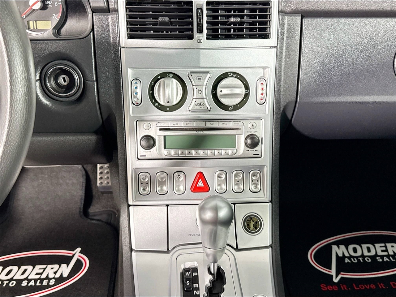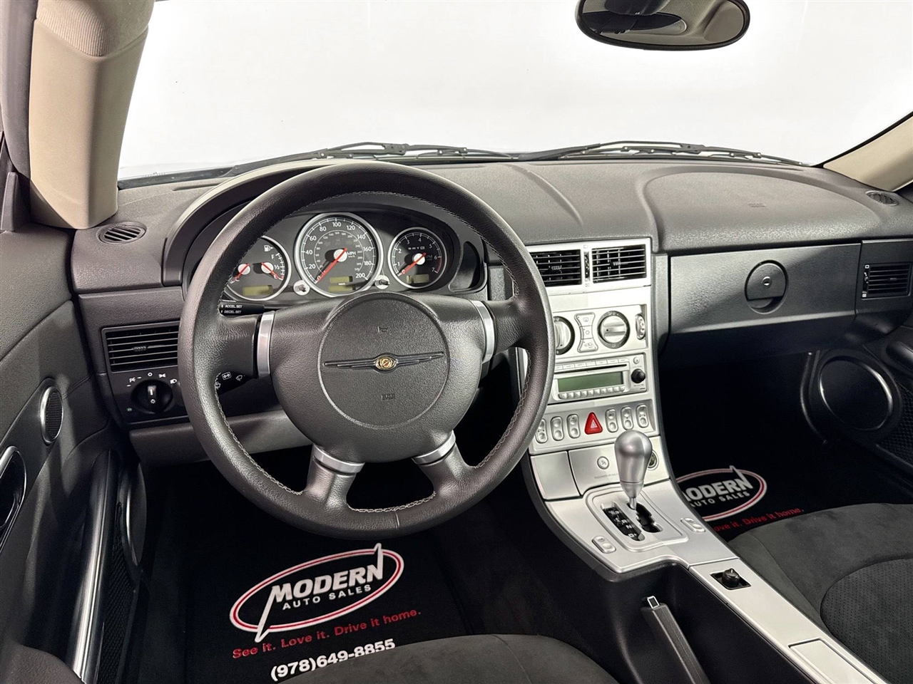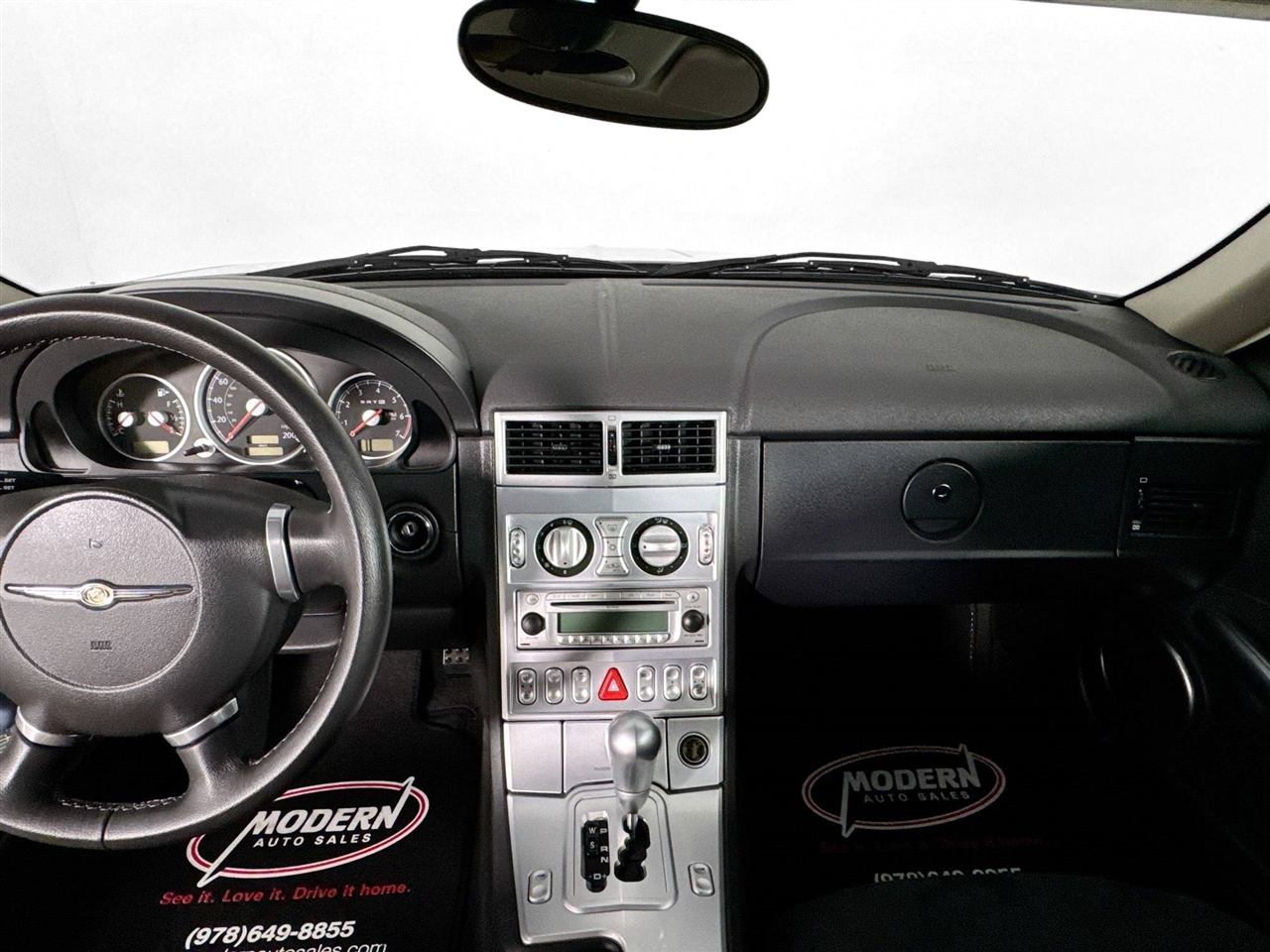 This 2005 Chrysler Crossfire SRT6 is an exceptionally rare find with only 5K miles! One of the lowest mileage examples available in the country! Powered by a supercharged V6 and in outstanding condition, this well maintained SRT6 delivers performance that feels like new. Schedule a test drive today or start the purchase process online! *MODERN CERTIFIED* Chrysler Crossfire SRT6 Coupe, 3.2L V6, 5 Speed Automatic Transmission, Traction Control, LEATHER SEATS, HEATED SEATS, DUAL POWER SEATS, Service Records Available, Written Warranty, GOOD Brakes, GOOD Tires, 2 KEYS, Owners Manuals, Oil change Club Membership, FREE Loaner cars, and it has been PROFESSIONALLY DETAILED Top to Bottom, so it LOOKS and SMELLS like NEW!!! Infinity Premium Audio System, 18' Front/19' Rear Aluminum SRT Design Wheels, 4-Wheel Disc Brakes, ABS brakes, Autostick Automatic Transmission, Electronic Stability Control, Four wheel independent suspension, Front Bucket Seats, Front dual zone A/C, Front fog lights, Garage door transmitter: HomeLink, Heated door mirrors, Leather Trim Seats w/Alcantara Suede, Power door mirrors, Remote keyless entry, Spoiler, Telescoping steering wheel. Clean CARFAX. Odometer is 46154 miles below market average! DONT PASS ME UP!!! - The PICTURES Speak for Themselves - TAKE a LOOK - You will not be disappointed here. Come by today, were OPEN 7 Days a Week. This 2005 Chrysler Crossfire SRT6 RWD Coupe has been through our Modern Certification Process, which includes a Written Warranty, a Complete Auto Detail, Spare Keys, Owners Manuals, a Full tank of Gas, FREE Carfax Vehicle History Report, 120-Point Rigorous Inspection, access to the vehicle service records, and Live Market Pricing, so you will have all the information you need to make a confident decision. Here at Modern Auto Sales we make the purchasing process easy and hassle free. If you've been searching for just the right vehicle, as well as the right dealership, then stop your search here. Give us a call or submit a form here on this site to schedule your visit, we promise not to waste your time, and you will be given the attention you deserve. Here are some of the added benefits you get when you buy from Modern Auto Sales * Written Warranty * Future service and maintenance discounts * Free Loaner car for Life * 2 Sets of Keys * Owner's Manual * First Stain Removal Free * Free windshield chip repair * Free oil change club Membership * Free Digital inspection every time you're in for service * AND SO MUCH MORE. Buy your next car the Modern Way and skip the hassle of the traditional dealerships.Our live market pricing with history adjusted valuation and daily discounts ensure that you'll get the best deal possible 7 days a week. Whether you prefer to visit us in person, or buy online and have your car shipped directly to you, we're here to make your car buying experience as easy and stress free as possible. What is a History Adjusted Valuation? A History Adjusted Valuation is a tool used to determine the value of a vehicle. It takes into account the vehicle's history, including events like accidents, ownership changes, and title brands. Black Book uses Experian AutoCheck data to provide this type of valuation. When you provide the vehicle's VIN, Black Book retrieves the AutoCheck report and adjusts the value based on the history events found in the report. Think of it like adjusting the value based on the vehicle's history, similar to how the value might be adjusted for the mileage.Visit Modern Auto Sales Dracut online at www.modernautosalesofdracut.com to see more pictures of this vehicle or call us at 978-815-6520 today to schedule your test drive.