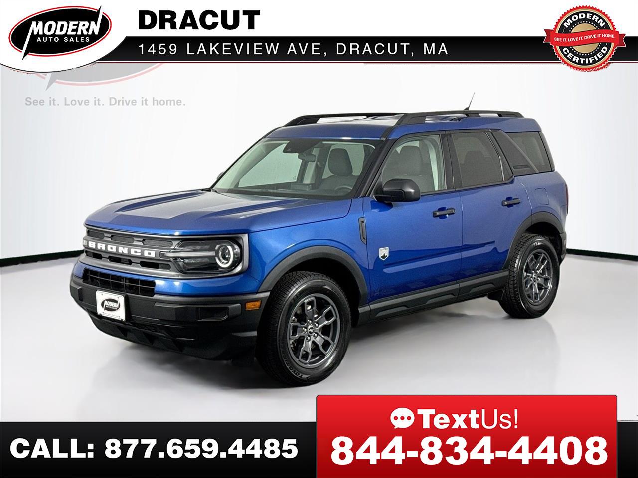 This 2023 Ford Bronco Big Bend in Atlas Blue is a 4WD SUV in excellent condition, fully through our Modern Certification Process. With its off road capability and all weather confidence, this Bronco is ready for New England adventures. Schedule a test drive today or start the purchase process online! *MODERN CERTIFIED* Ford Bronco Sport Big Bend 4WD, EcoBoost 1.5L Turbo, 8 Speed Auto, Push Button Start, Remainder of Factory Warranty, BACK up CAMERA, BLUETOOTH Hands Free, FORD SYNC, SIRIUS XM, Traction Control, Privacy Glass, Keyless Entry, ROOF RACK, Service Records Available, Written Warranty, NEW Brakes, GOOD Tires, NEW Wipers, 2 KEYS, Owners Manuals, Oil change Club Membership, FREE Loaner cars, and it has been PROFESSIONALLY DETAILED Top to Bottom, so it LOOKS and SMELLS like NEW!!! 4-Wheel Disc Brakes, ABS brakes, Auto High-beam Headlights, Automatic temperature control, Electronic Stability Control, Four wheel independent suspension, Heated door mirrors, Power door mirrors, Steering wheel mounted audio controls, SYNC 3/Apple CarPlay/Android Auto, Telescoping steering wheel, Tilt steering wheel, Wheels: 17' Carbonized Gray-Painted Aluminum. CARFAX One-Owner. 25/28 City/Highway MPG This is the one you want to make a deal on, its up to date on all service and maintenance and its available to take home today. Stop by for a closer look, you will love it. This 2023 Ford Bronco Sport Big Bend 4x4 has been through our Modern Certification Process, which includes a Written Warranty, a Complete Auto Detail, Spare Keys, Owners Manuals, a Full tank of Gas, FREE Carfax Vehicle History Report, 120-Point Rigorous Inspection, access to the vehicle service records, and Live Market Pricing, so you will have all the information you need to make a confident decision. Here at Modern Auto Sales we make the purchasing process easy and hassle free. If you've been searching for just the right vehicle, as well as the right dealership, then stop your search here. Give us a call or submit a form here on this site to schedule your visit, we promise not to waste your time, and you will be given the attention you deserve. Here are some of the added benefits you get when you buy from Modern Auto Sales * Written Warranty * Future service and maintenance discounts * Free Loaner car for Life * 2 Sets of Keys * Owner's Manual * First Stain Removal Free * Free windshield chip repair * Free oil change club Membership * Free Digital inspection every time you're in for service * AND SO MUCH MORE. Buy your next car the Modern Way and skip the hassle of the traditional dealerships.Our live market pricing with history adjusted valuation and daily discounts ensure that you'll get the best deal possible 7 days a week. Whether you prefer to visit us in person, or buy online and have your car shipped directly to you, we're here to make your car buying experience as easy and stress free as possible. What is a History Adjusted Valuation? A History Adjusted Valuation is a tool used to determine the value of a vehicle. It takes into account the vehicle's history, including events like accidents, ownership changes, and title brands. Black Book uses Experian AutoCheck data to provide this type of valuation. When you provide the vehicle's VIN, Black Book retrieves the AutoCheck report and adjusts the value based on the history events found in the report. Think of it like adjusting the value based on the vehicle's history, similar to how the value might be adjusted for the mileage.Visit Modern Auto Sales Dracut online at www.modernautosalesofdracut.com to see more pictures of this vehicle or call us at 978-815-6520 today to schedule your test drive.