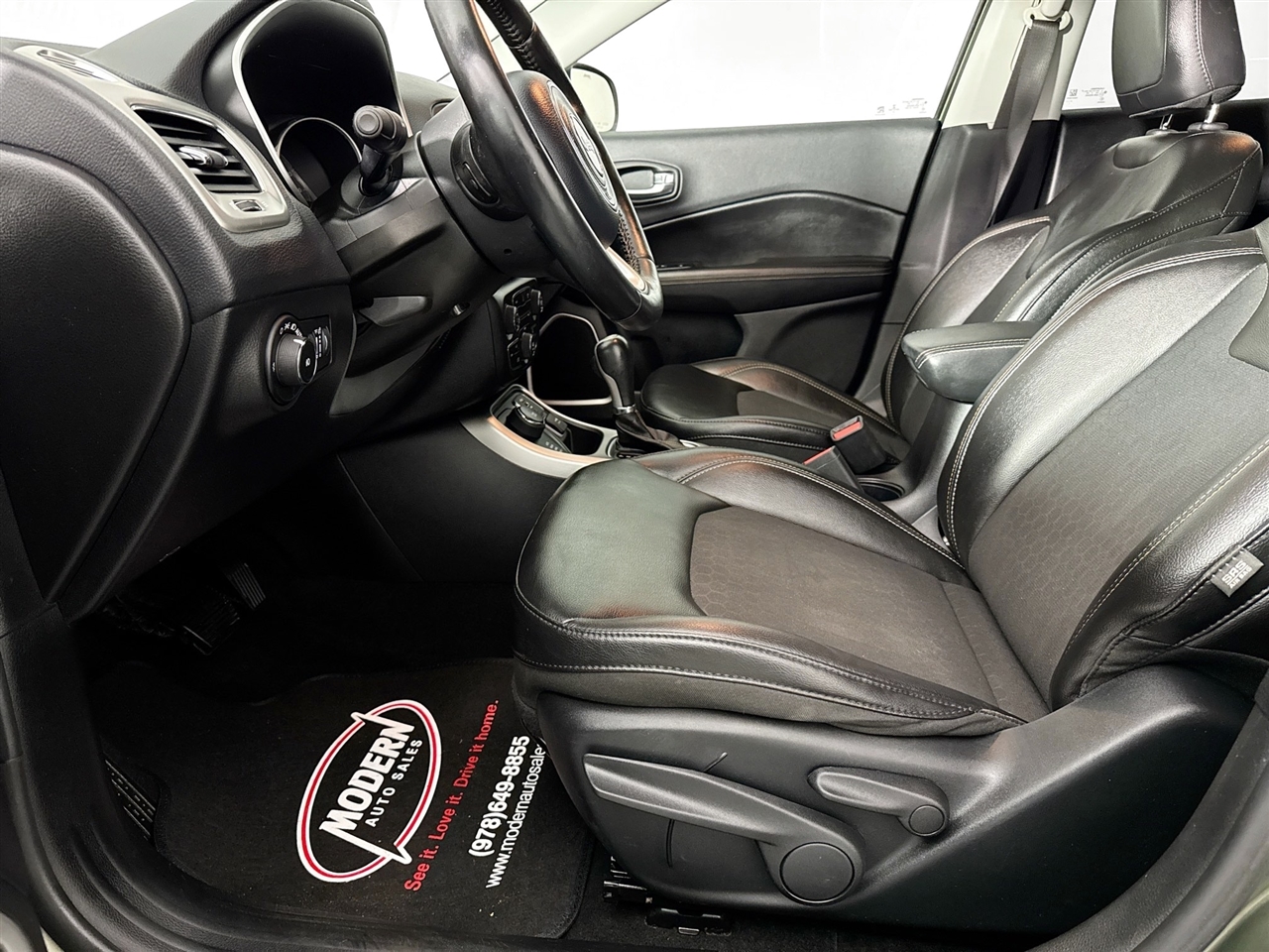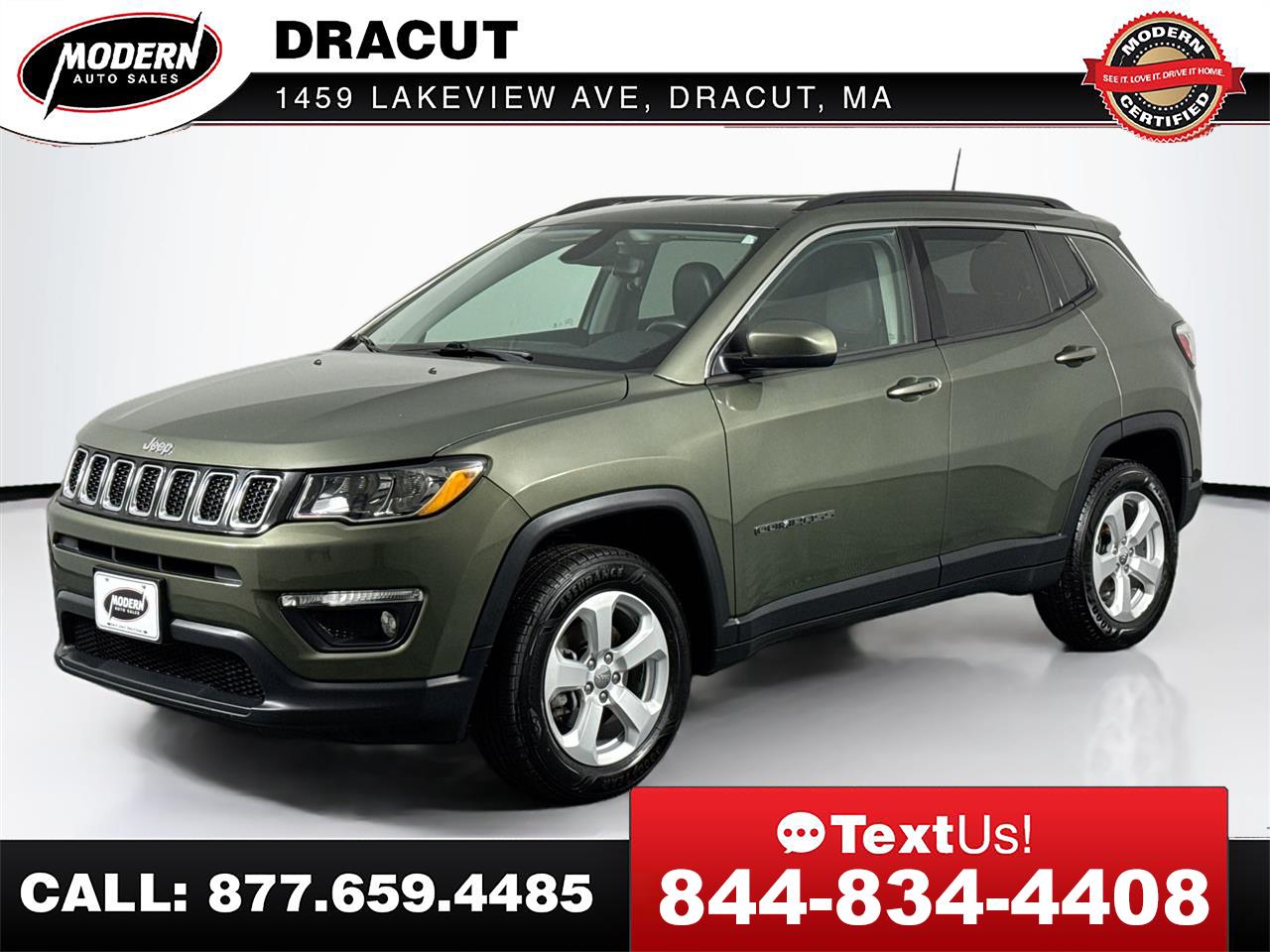 This 2020 Jeep Compass Latitude in Olive Green Pearlcoat is fully through our Modern Certification Process (new brakes, new tires, 2 keys and much more). With 4x4 capability and tech like Apple CarPlay and Android Auto, it's ready for both city streets and weekend adventures. Schedule a test drive today or start the purchase process online! *MODERN CERTIFIED* Jeep Compass Latitude 4WD, 2.4L 4 Cylinder Engine, 9 Speed Automatic Transmission, Push Button Start, BACK up CAMERA, BLUETOOTH Hands Free, UCONNECT, SIRIUS XM, REMOTE START, Traction Control, LEATHER SEATS, HEATED SEATS, HEATED Steering Wheel, Privacy Glass, Keyless Entry, ROOF RACK, Service Records Available, Written Warranty, NEW Brakes, NEW Tires, NEW Wipers, 2 KEYS, Owners Manuals, Oil change Club Membership, FREE Loaner cars, and it has been PROFESSIONALLY DETAILED Top to Bottom, so it LOOKS and SMELLS like NEW!!! ABS brakes, Apple CarPlay/Android Auto, Cold Weather Group, Electronic Stability Control, Front dual zone A/C, Front fog lights, Fully automatic headlights, Heated door mirrors, Heated Front Seats, Heated Steering Wheel, ParkView Rear Back-Up Camera, Power door mirrors, Rear seat center armrest, Split folding rear seat, Steering wheel mounted audio controls, Telescoping steering wheel, Tilt steering wheel, Wheels: 17' Silver Painted Aluminum, Windshield Wiper De-Icer. Clean CARFAX. 22/30 City/Highway MPG Stop by anytime for a test drive, bring your trade in and you can take this Good looking vehicle home today. This 2020 Jeep Compass Latitude 4x4 has been through our Modern Certification Process, which includes a Written Warranty, a Complete Auto Detail, Spare Keys, Owners Manuals, a Full tank of Gas, FREE Carfax Vehicle History Report, 120-Point Rigorous Inspection, access to the vehicle service records, and Live Market Pricing, so you will have all the information you need to make a confident decision. Here at Modern Auto Sales we make the purchasing process easy and hassle free. If you've been searching for just the right vehicle, as well as the right dealership, then stop your search here. Give us a call or submit a form here on this site to schedule your visit, we promise not to waste your time, and you will be given the attention you deserve. Here are some of the added benefits you get when you buy from Modern Auto Sales * Written Warranty * Future service and maintenance discounts * Free Loaner car for Life * 2 Sets of Keys * Owner's Manual * First Stain Removal Free * Free windshield chip repair * Free oil change club Membership * Free Digital inspection every time you're in for service * AND SO MUCH MORE. Buy your next car the Modern Way and skip the hassle of the traditional dealerships.Our live market pricing with history adjusted valuation and daily discounts ensure that you'll get the best deal possible 7 days a week. Whether you prefer to visit us in person, or buy online and have your car shipped directly to you, we're here to make your car buying experience as easy and stress free as possible. What is a History Adjusted Valuation? A History Adjusted Valuation is a tool used to determine the value of a vehicle. It takes into account the vehicle's history, including events like accidents, ownership changes, and title brands. Black Book uses Experian AutoCheck data to provide this type of valuation. When you provide the vehicle's VIN, Black Book retrieves the AutoCheck report and adjusts the value based on the history events found in the report. Think of it like adjusting the value based on the vehicle's history, similar to how the value might be adjusted for the mileage.Visit Modern Auto Sales Dracut online at www.modernautosalesofdracut.com to see more pictures of this vehicle or call us at 978-815-6520 today to schedule your test drive.
