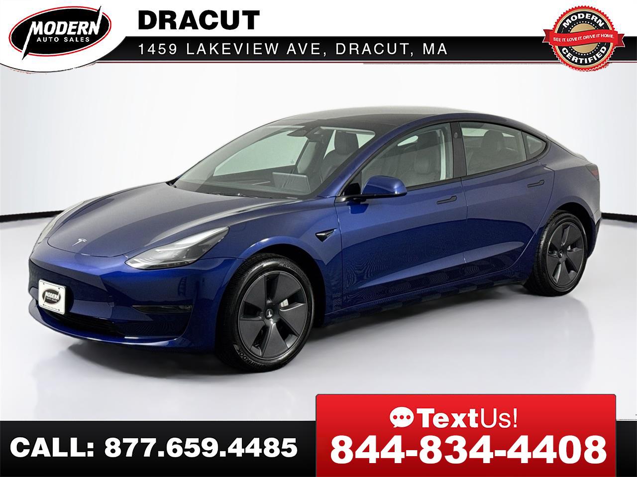 This 2023 Tesla Model 3 Long Range has less than 8K miles and is finished in the sought after Blue. Offering an estimated 358 miles of range, all wheel drive, and Autopilot capability, this like new EV delivers premium performance and high tech driving. Schedule a test drive today or start the purchase process online! *MODERN CERTIFIED* Tesla Model 3 Long Range All-Wheel Drive, Remainder of Factory Warranty, NAVIGATION - GPS, BACK up CAMERA, BLUETOOTH Hands Free, Traction Control, LEATHER SEATS, HEATED SEATS, DUAL POWER SEATS, HEATED Steering Wheel, Keyless Entry, PARK SENSORS, Service Records Available, Written Warranty, GOOD Brakes, GOOD Tires, 2 KEYS, Owners Manuals, Oil change Club Membership, FREE Loaner cars, and it has been PROFESSIONALLY DETAILED Top to Bottom, so it LOOKS and SMELLS like NEW!!! 4-Wheel Disc Brakes, ABS brakes, Auto High-beam Headlights, Electronic Stability Control, Exterior Parking Camera Rear, Front dual zone A/C, Front fog lights, Genuine wood dashboard insert, Heated door mirrors, Heated Front Bucket Seats, Heated rear seats, Heated steering wheel, Lane Departure Warning System, Memory seat, Power door mirrors, Rain sensing wipers, Telescoping steering wheel, Tilt steering wheel, Wheels: 18' x 8.5' Aero. Clean CARFAX. Odometer is 2842 miles below market average! 134/126 City/Highway MPG You have to see this one in person to truly appreciate its condition, stop by today, we offer financing with low monthly payments and all trade ins are welcome. This 2023 Tesla Model 3 Long Range AWD has been through our Modern Certification Process, which includes a Written Warranty, a Complete Auto Detail, Spare Keys, Owners Manuals, a Full tank of Gas, FREE Carfax Vehicle History Report, 120-Point Rigorous Inspection, access to the vehicle service records, and Live Market Pricing, so you will have all the information you need to make a confident decision. Here at Modern Auto Sales we make the purchasing process easy and hassle free. If you've been searching for just the right vehicle, as well as the right dealership, then stop your search here. Give us a call or submit a form here on this site to schedule your visit, we promise not to waste your time, and you will be given the attention you deserve. Here are some of the added benefits you get when you buy from Modern Auto Sales * Written Warranty * Future service and maintenance discounts * Free Loaner car for Life * 2 Sets of Keys * Owner's Manual * First Stain Removal Free * Free windshield chip repair * Free oil change club Membership * Free Digital inspection every time you're in for service * AND SO MUCH MORE.Visit Modern Auto Sales Dracut online at www.modernautosalesofdracut.com to see more pictures of this vehicle or call us at 978-815-6520 today to schedule your test drive.
