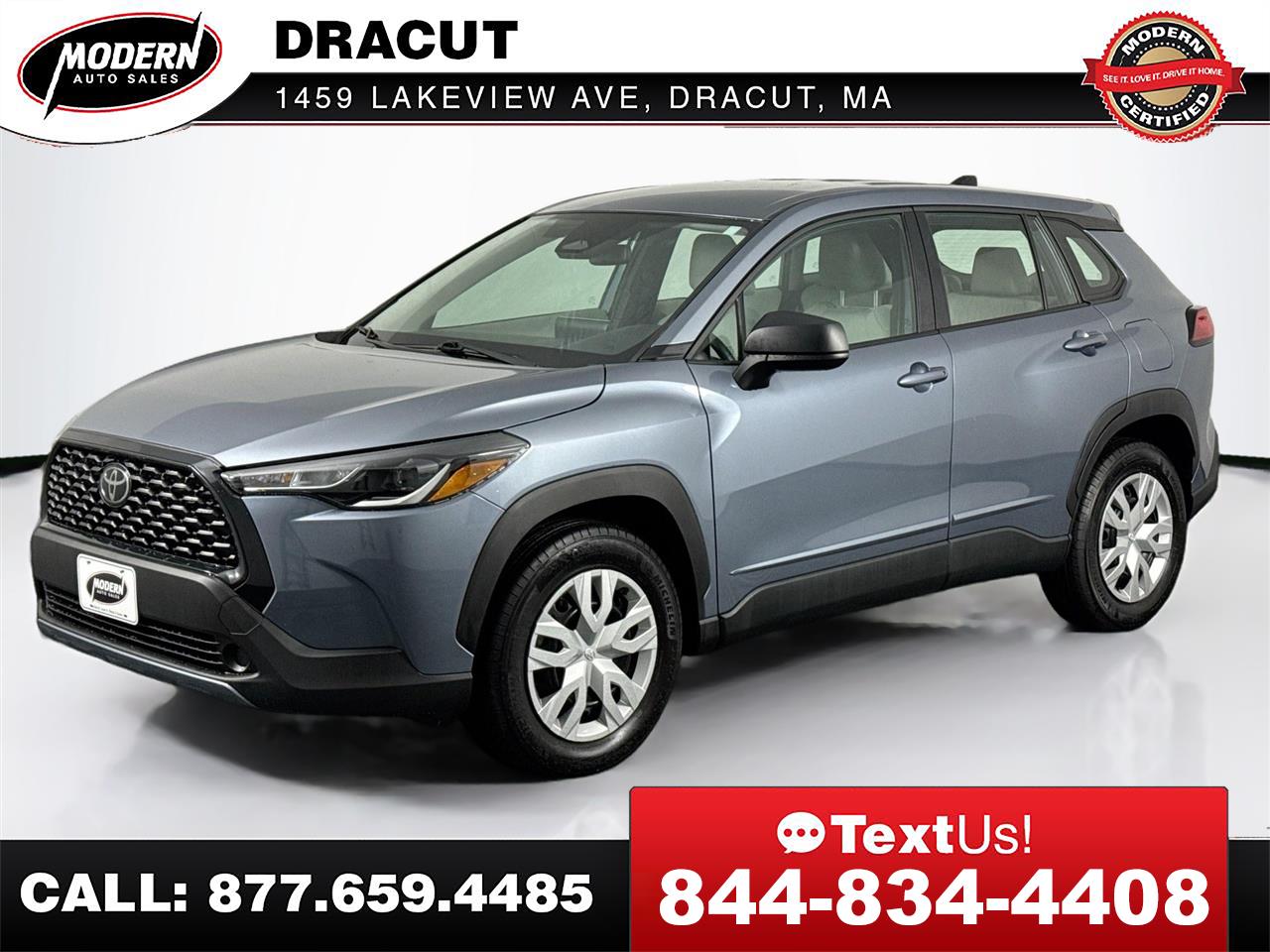 This 2024 Toyota Corolla Cross L has only 7K miles and is in amazing condition. Offering Toyota's legendary reliability, excellent fuel economy, and the added space and ride height of a crossover, it's the perfect blend of practicality and peace of mind. Schedule a test drive today or start the purchase process online! Buy your next car the Modern Way and skip the hassle of the traditional dealerships.Our live market pricing with history adjusted valuation and daily discounts ensure that you'll get the best deal possible 7 days a week. Whether you prefer to visit us in person, or buy online and have your car shipped directly to you, we're here to make your car buying experience as easy and stress free as possible. What is a History Adjusted Valuation? A History Adjusted Valuation is a tool used to determine the value of a vehicle. It takes into account the vehicle's history, including events like accidents, ownership changes, and title brands. Black Book uses Experian AutoCheck data to provide this type of valuation. When you provide the vehicle's VIN, Black Book retrieves the AutoCheck report and adjusts the value based on the history events found in the report. Think of it like adjusting the value based on the vehicle's history, similar to how the value might be adjusted for the mileage.Visit Modern Auto Sales Dracut online at www.modernautosalesofdracut.com to see more pictures of this vehicle or call us at 978-815-6520 today to schedule your test drive.
