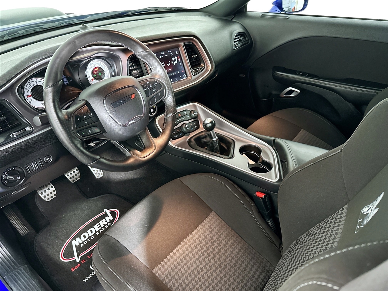 This Indigo Blue Challenger R/T Scat Pack has it all! 6.4L HEMI V8, Shaker Package, and a 6-speed manual! Super clean and low miles, hard to find one like this. This one won't last, inquire today! Buy your next car the Modern Way and skip the hassle of the traditional dealerships.Our live market pricing with history adjusted valuation and daily discounts ensure that you'll get the best deal possible 7 days a week. Whether you prefer to visit us in person, or buy online and have your car shipped directly to you, we're here to make your car buying experience as easy and stress free as possible. What is a History Adjusted Valuation? A History Adjusted Valuation is a tool used to determine the value of a vehicle. It takes into account the vehicle's history, including events like accidents, ownership changes, and title brands. Black Book uses Experian AutoCheck data to provide this type of valuation. When you provide the vehicle's VIN, Black Book retrieves the AutoCheck report and adjusts the value based on the history events found in the report. Think of it like adjusting the value based on the vehicle's history, similar to how the value might be adjusted for the mileage.