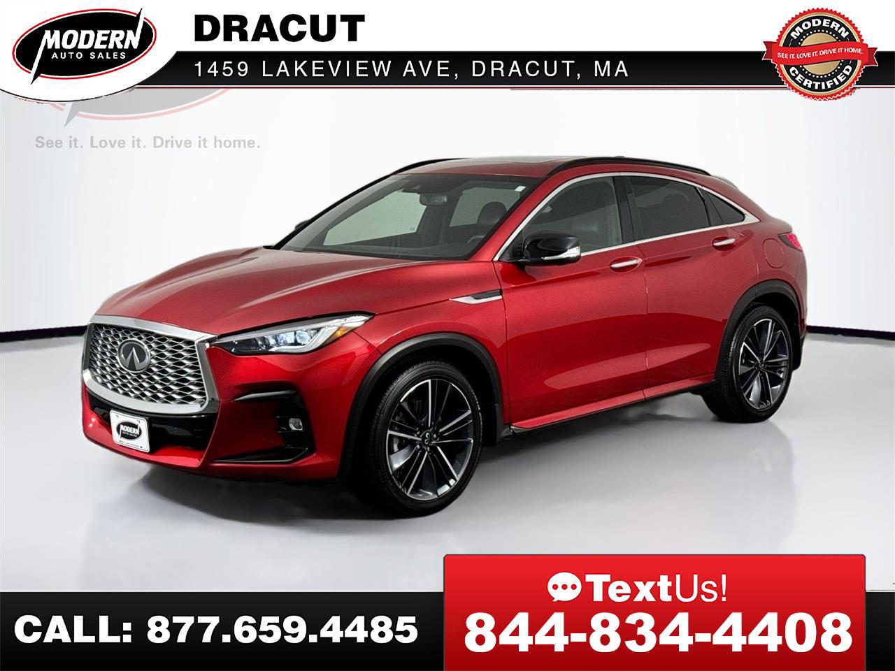 This 2023 Infiniti QX55 Essential is a head turning one owner SUV with only 13k miles, dressed in vibrant Dynamic Sunstone Red. In flawless condition, the pictures say it all, this crossover won't last long, schedule a test drive today or start the purchase process online today! *MODERN CERTIFIED* INFINITI QX55 ESSENTIAL All-Wheel Drive, 2.0L Turbo, CVT Automatic Transmission W/ Paddle Shift, Push Button Start, Remainder of Factory Warranty, NAVIGATION - GPS, MOONROOF / SUNROOF, BACK up CAMERA, BLUETOOTH Hands Free, SIRIUS XM, REMOTE START, Traction Control, LEATHER SEATS, HEATED SEATS, DUAL POWER SEATS, HEATED Steering Wheel, Privacy Glass, Keyless Entry, ROOF RACK, PARK SENSORS, Service Records Available, Written Warranty, GOOD Brakes, GOOD Tires, 2 KEYS, Owners Manuals, Oil change Club Membership, FREE Loaner cars, and it has been PROFESSIONALLY DETAILED Top to Bottom, so it LOOKS and SMELLS like NEW!!! Android Auto/ Apple Carplay, 4-Wheel Disc Brakes, ABS brakes, Auto High-beam Headlights, Electronic Stability Control, Front dual zone A/C, Front fog lights, Garage door transmitter: HomeLink, Heated door mirrors, Memory seat, Power door mirrors, Power Liftgate, Power moonroof, Radio: Bose Performance Series Premium Audio, Rain sensing wipers, Telescoping steering wheel, Tilt steering wheel, Ventilated front seats, Wheels: 20' Machine Finished Aluminum Alloy. CARFAX One-Owner. Clean CARFAX. 22/28 City/Highway MPG DONT PASS ME UP!!! - The PICTURES Speak for Themselves - TAKE a LOOK - You will not be disappointed here. Come by today, were OPEN 7 Days a Week. This 2023 INFINITI QX55 ESSENTIAL AWD has been through our Modern Certification Process, which includes a Written Warranty, a Complete Auto Detail, Spare Keys, Owners Manuals, a Full tank of Gas, FREE Carfax Vehicle History Report, 120-Point Rigorous Inspection, access to the vehicle service records, and Live Market Pricing, so you will have all the information you need to make a confident decision. Here at Modern Auto Sales we make the purchasing process easy and hassle free. If you've been searching for just the right vehicle, as well as the right dealership, then stop your search here. Give us a call or submit a form here on this site to schedule your visit, we promise not to waste your time, and you will be given the attention you deserve. Here are some of the added benefits you get when you buy from Modern Auto Sales * Written Warranty * Future service and maintenance discounts * Free Loaner car for Life * 2 Sets of Keys * Owner's Manual * First Stain Removal Free * Free windshield chip repair * Free oil change club Membership * Free Digital inspection every time you're in for service * AND SO MUCH MORE. Buy your next car the Modern Way and skip the hassle of the traditional dealerships.Our live market pricing with history adjusted valuation and daily discounts ensure that you'll get the best deal possible 7 days a week. Whether you prefer to visit us in person, or buy online and have your car shipped directly to you, we're here to make your car buying experience as easy and stress free as possible. What is a History Adjusted Valuation? A History Adjusted Valuation is a tool used to determine the value of a vehicle. It takes into account the vehicle's history, including events like accidents, ownership changes, and title brands. Black Book uses Experian AutoCheck data to provide this type of valuation. When you provide the vehicle's VIN, Black Book retrieves the AutoCheck report and adjusts the value based on the history events found in the report. Think of it like adjusting the value based on the vehicle's history, similar to how the value might be adjusted for the mileage.