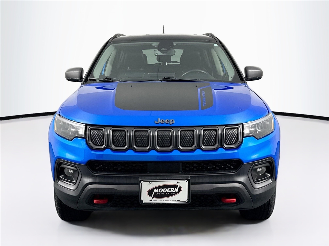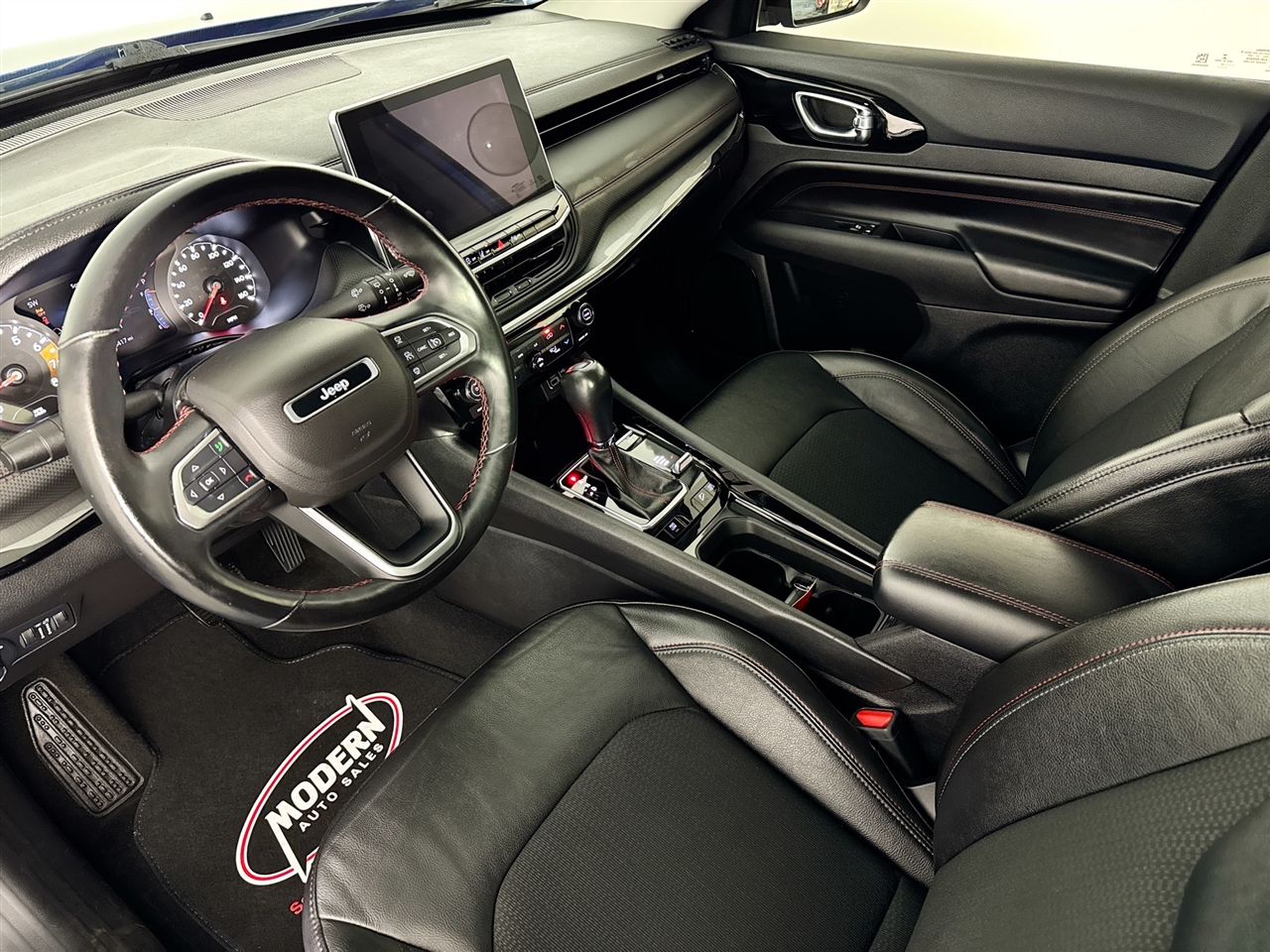 This 2022 Jeep Compass Trailhawk is in excellent condition, featuring a Laser Blue Pearl exterior with black/red interior. Loaded with heated seats, a heated steering wheel, and Apple CarPlay/Android Auto, this rugged SUV is fully through our Modern Certification Process (new brakes, new tires, 2 keys, and more) and ready for adventure. Schedule a test drive today or start the purchase process online! *MODERN CERTIFIED* Jeep Compass Trailhawk 4WD, 2.4L 4 Cylinder Engine, 9 Speed Automatic Transmission, Push Button Start, Remainder of Factory Warranty, BACK up CAMERA, BLUETOOTH Hands Free, SIRIUS XM, REMOTE START, Traction Control, LEATHER SEATS, HEATED SEATS, POWER SEAT, HEATED Steering Wheel, Privacy Glass, Keyless Entry, ROOF RACK, PARK SENSORS, Service Records Available, Written Warranty, NEW Brakes All Around, NEW Tires, NEW Wipers, 2 KEYS, Owners Manuals, Oil change Club Membership, FREE Loaner cars, and it has been PROFESSIONALLY DETAILED Top to Bottom, so it LOOKS and SMELLS like NEW!!! 10.1' Touchscreen Display, 115V Auxiliary Power Outlet, 4-Wheel Disc Brakes, ABS brakes, Auto High-beam Headlights, Electronic Stability Control, Front dual zone A/C, Front fog lights, Heated door mirrors, Heated Front Seats, Leather Wrapped Steering Wheel, ParkView Rear Back-Up Camera, Power door mirrors, Rain sensing wipers, Remote Start System, Steering wheel mounted audio controls, Telescoping steering wheel, Tilt steering wheel, Trailhawk Convenience Group, Wheels: 17' Painted Diamond Cut Aluminum, Windshield Wiper De-Icer. Clean CARFAX. 22/30 City/Highway MPG You can do this!! We make it easy by accepting all trade ins, and offering 'ON THE SPOT' financing right here at the dealership, come visit us... you will be driving your new vehicle home Today. This 2022 Jeep Compass Trailhawk 4x4 has been through our Modern Certification Process, which includes a Written Warranty, a Complete Auto Detail, Spare Keys, Owners Manuals, a Full tank of Gas, FREE Carfax Vehicle History Report, 120-Point Rigorous Inspection, access to the vehicle service records, and Live Market Pricing, so you will have all the information you need to make a confident decision. Here at Modern Auto Sales we make the purchasing process easy and hassle free. If you've been searching for just the right vehicle, as well as the right dealership, then stop your search here. Give us a call or submit a form here on this site to schedule your visit, we promise not to waste your time, and you will be given the attention you deserve. Here are some of the added benefits you get when you buy from Modern Auto Sales * Written Warranty * Future service and maintenance discounts * Free Loaner car for Life * 2 Sets of Keys * Owner's Manual * First Stain Removal Free * Free windshield chip repair * Free oil change club Membership * Free Digital inspection every time you're in for service * AND SO MUCH MORE. Buy your next car the Modern Way and skip the hassle of the traditional dealerships.Our live market pricing with history adjusted valuation and daily discounts ensure that you'll get the best deal possible 7 days a week. Whether you prefer to visit us in person, or buy online and have your car shipped directly to you, we're here to make your car buying experience as easy and stress free as possible. What is a History Adjusted Valuation? A History Adjusted Valuation is a tool used to determine the value of a vehicle. It takes into account the vehicle's history, including events like accidents, ownership changes, and title brands. Black Book uses Experian AutoCheck data to provide this type of valuation. When you provide the vehicle's VIN, Black Book retrieves the AutoCheck report and adjusts the value based on the history events found in the report. Think of it like adjusting the value based on the vehicle's history, similar to how the value might be adjusted for the mileage.Visit Modern Auto Sales Dracut online at www.modernautosalesofdracut.com to see more pictures of this vehicle or call us at 978-815-6520 today to schedule your test drive.